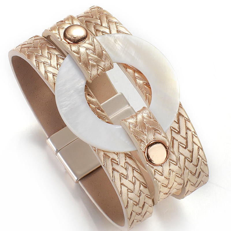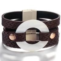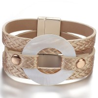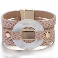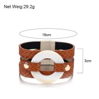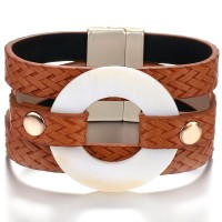 Multi Leather Wrap Magnet Bracelet Bangle Acrylic Round Shell Charm Bracelet Women Friendship Couple Jewelry Gift