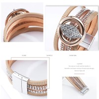 Material: Leather+Alloy+Rhinestone + Magnetic ClaspSize:19.3*2.2cm/7.36*0.86"(1 inch = 2.54 cm)Gender:Women/Female/Lady/Girls Colors: As picture shown Features: Bohemian Style/Rhinestone/Multilayer/Rhinestone/Bohemian/Ethnic/Alloy Metal/Rhinestone Leaf/ Round CircleOccassion:Party/Office/Casual