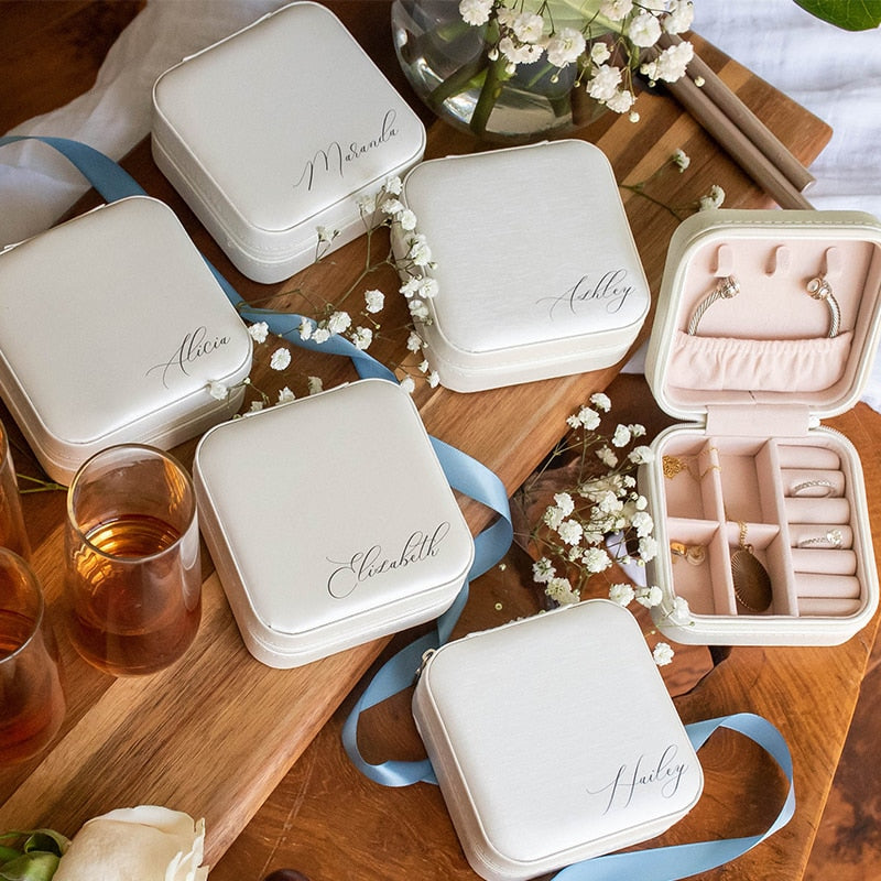 Personalized Jewelry Box, Custom Bridesmaid Gift Bachelorette Party Anniversary Box, 10*10*5cm Portable Leather Travel Case