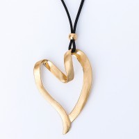 Large Abstract Brushed Heart Pendant Necklaces Vintage Black Rope Chain Long Statement Necklace Fashion Jewelry bijoux