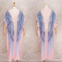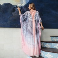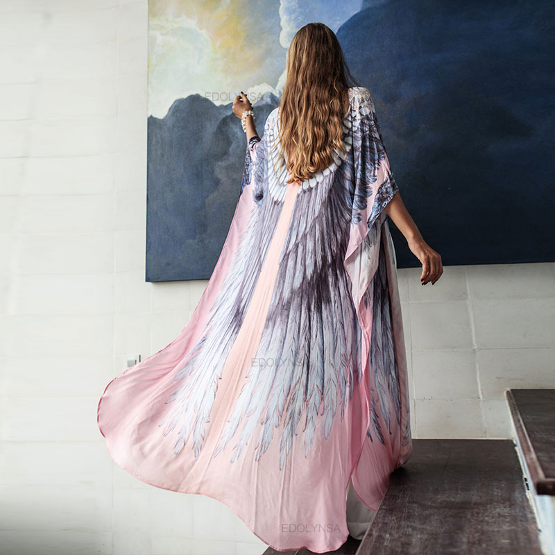 Pink Bohemian Chic Feather Wings Bikini Cover-ups Plus Size Tunic Women Summer Beachwear Swim Suit Cover Up Robe De Plage A926
