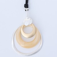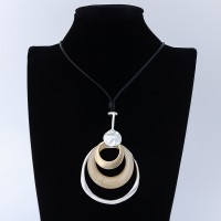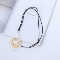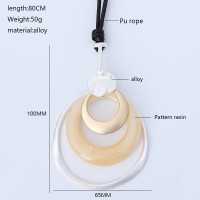 Stylish Geometric Metal Circle Long Leather Statement Necklace for Women Girls Resin Round Pendant Necklace Jewelry