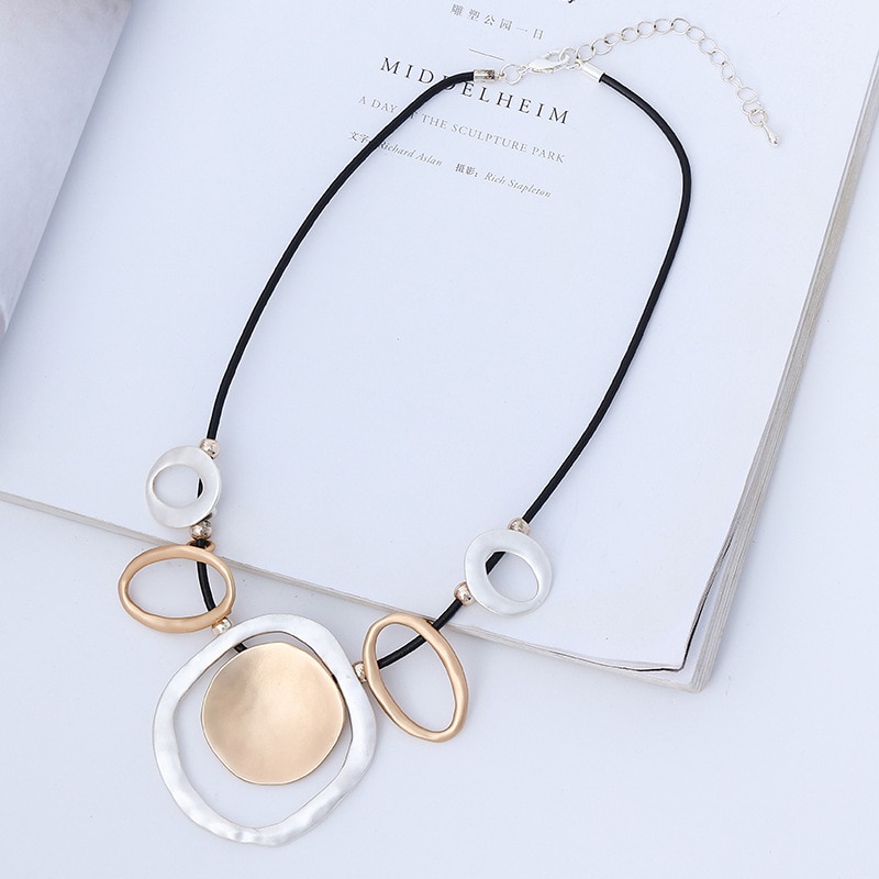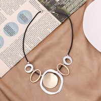 Vinatge Geometric Hollow Circle Pendant Black Leather Necklace for Women Statement Short Necklace Femme Jewelry