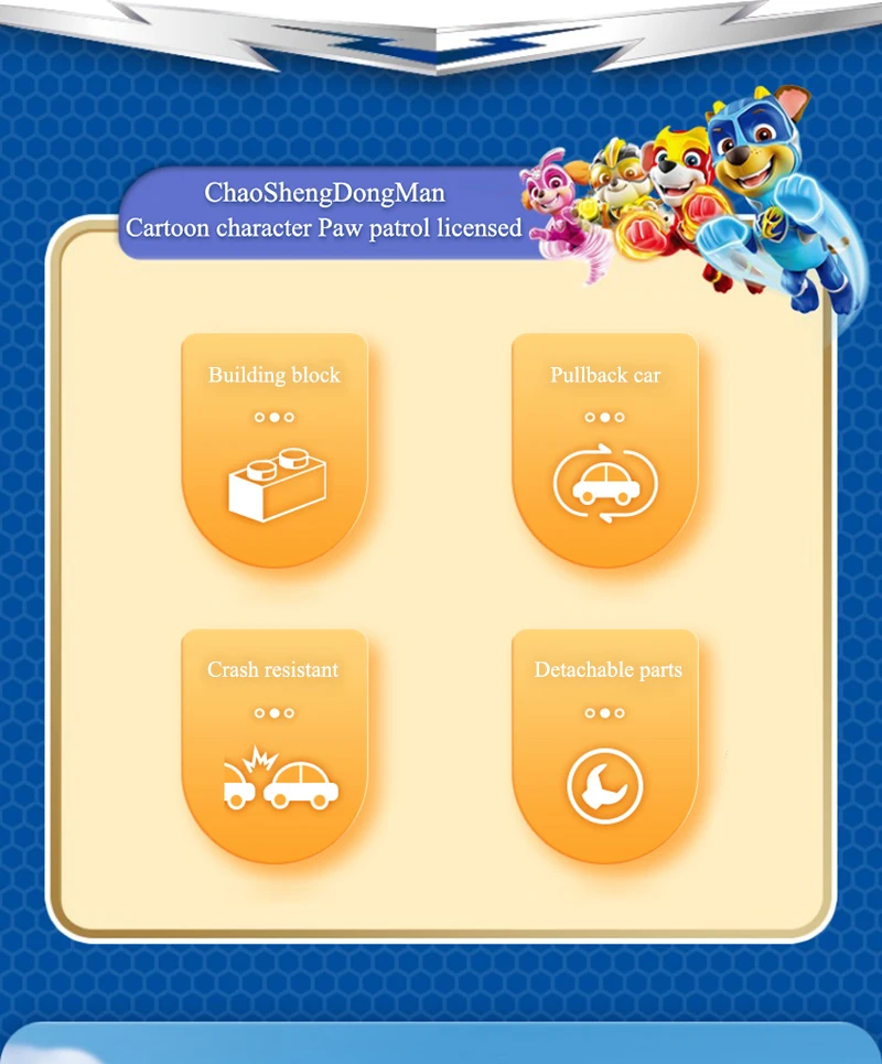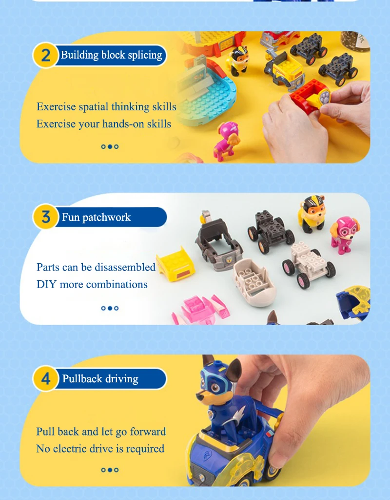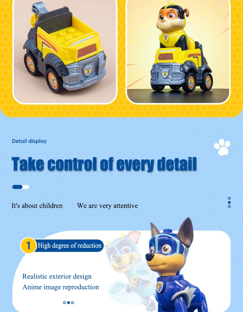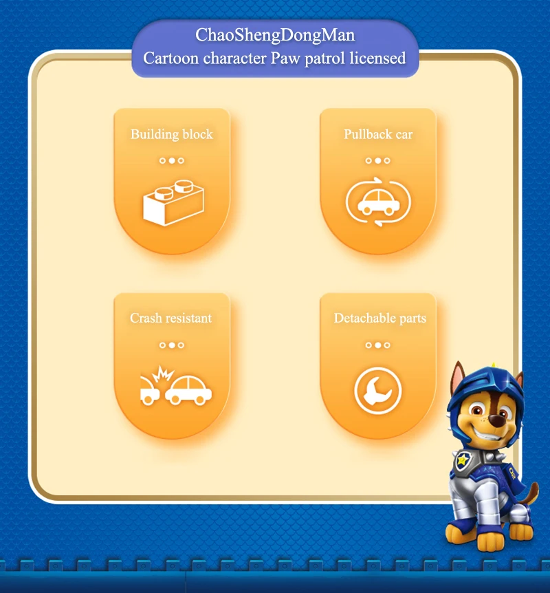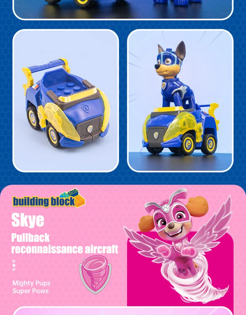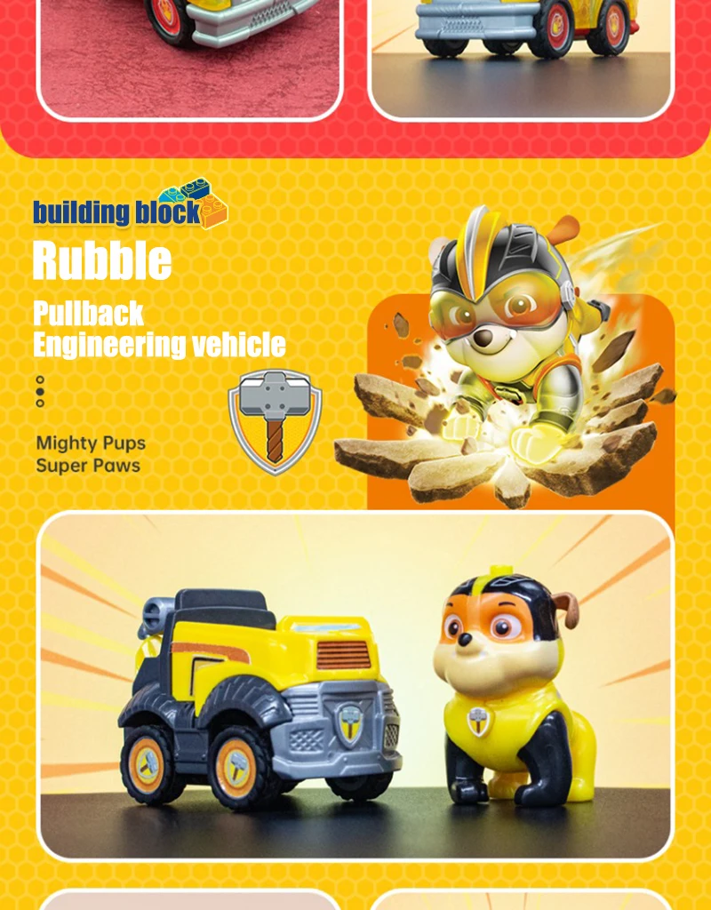Product Name: Paw Patrol Building block toys Material: ABS / PVC Applicable age: children over 6 years old Product size: see details page Maintenance: wash with warm water or wipe with dry cloth Warm tip: due to manual measurement and different product shapes, the size may be slightly different. Please refer to the real object.