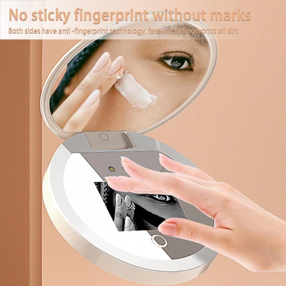 Feature: UV Test Camera - The uv camera reveals the effect to apply sunscreen. 87.6% of the world's people are ineffective sunscreen. Regardless of the weather and temperature, pay attention to the effects of ultraviolet rays on your skin when you go out New Technology Mirror for Portable- Ultraviolet rays and sunscreen that are invisible to the our eye. By setting into your mini travel mirror, you can see the effect of sunscreen, sunscreen looks darker in the UV camera because it absorbs ultraviolet rays Check Your Facial Skin Condition - The uv camera can not only check the efftect of sunscreen, but also the makeup removal and skin health. The right sun protection and removing makeup cleanly are the first step away from aging Compact Mirror with Light - Double-sided, 2X magnification mirror with light and UV Camera, long press screen to open camera, short press to change lighting brightness . Mirror size of 3.8" diameter and only 0.7" thick, easy storage and carry Idea festival gift for women: This travel mirror is a popular and useful makeup gift for makeup lovers on Valentine's Day. Love her and care her facial skin health