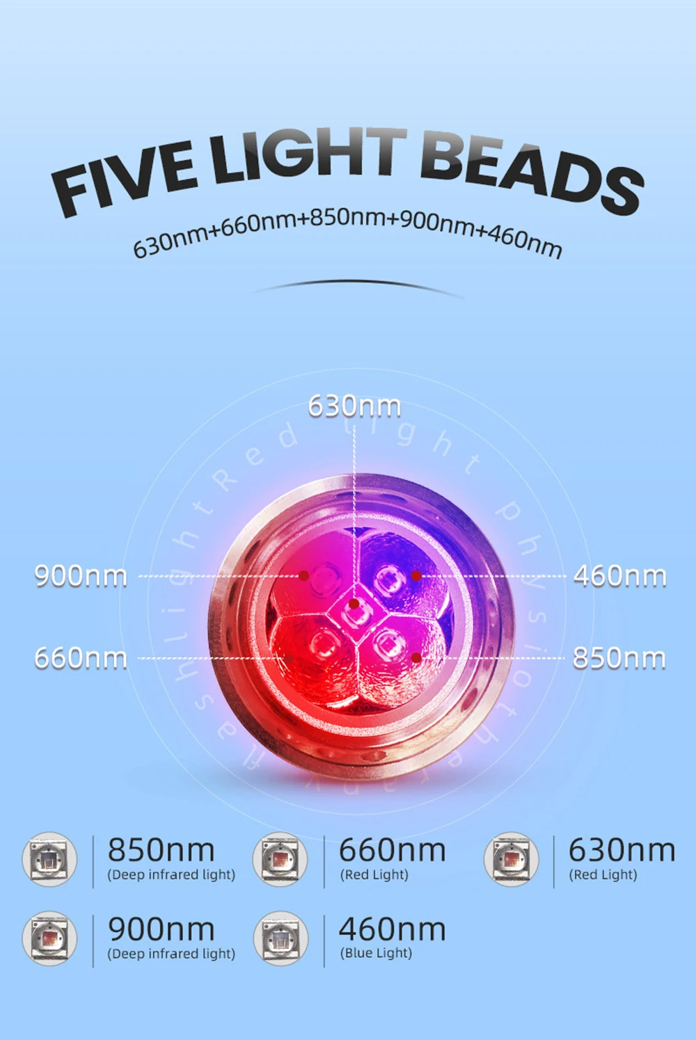 850 + 900nm near-infrared light: strong penetration, deep treatment