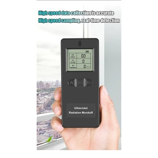 This is a dual use meter can detect both radiation and temperature, which display the value on the LCD digital screen.Measuring range: 0-3000w/cm²,Band: 350-380nano